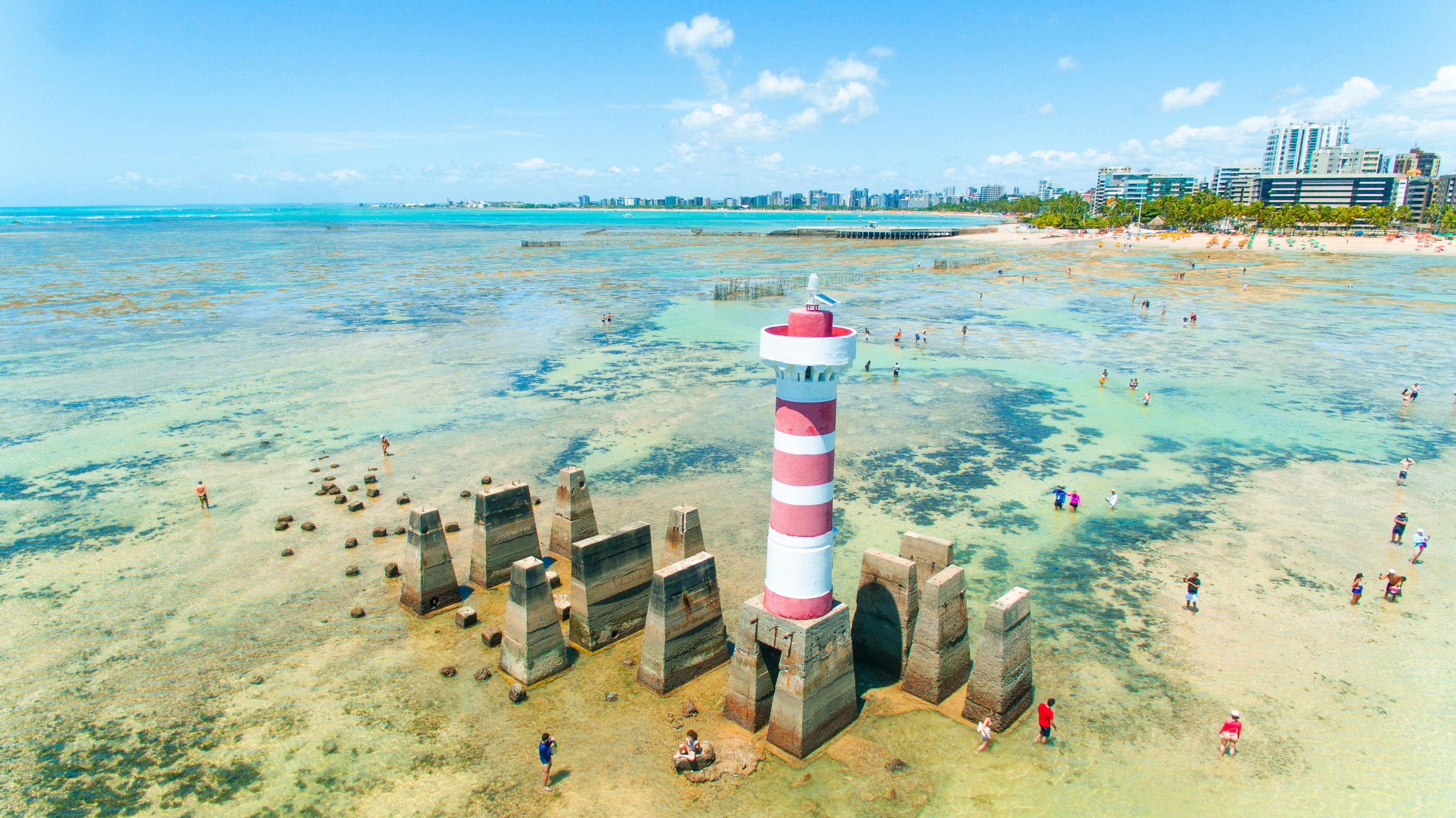 Maceió fica ainda mais incrÃvel na maré baixa. Fique de olho na tábua de marés e vá caminhando pelas pedras até o famoso farol da Ponta Verde. Rolê clássico para turistas e maceioenses!