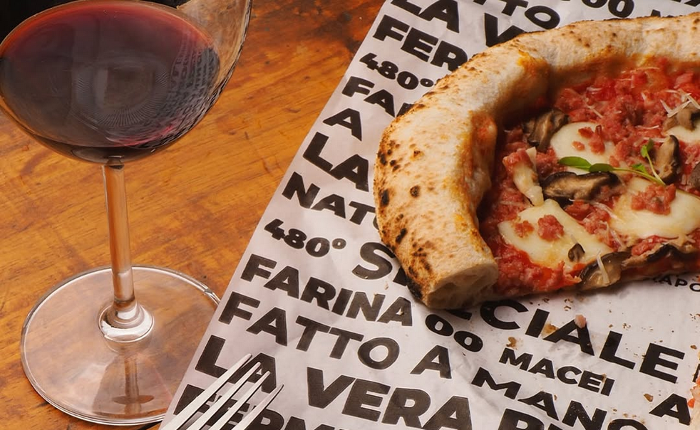 O cardápio inclui opções com ingredientes locais, bordas de parmesão ou calabresa servidas como entrada, além de pizzas doces, como a de chocolate, e sobremesas como cannoli siciliano.